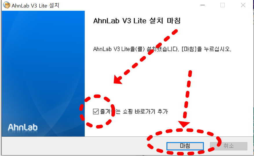 10. 안랩 V3 무료백신 프로그램이 설치 되었습니다.